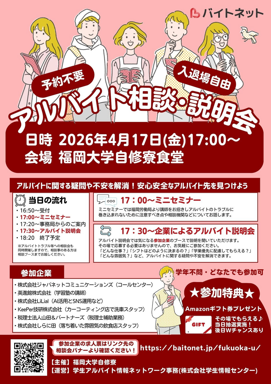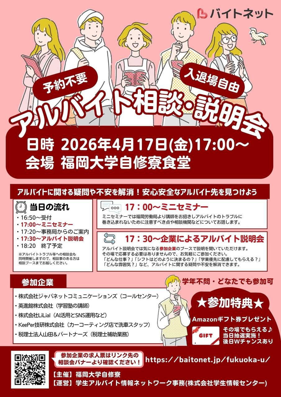 学生のアルバイト紹介サイトの運営、新卒採用企業のサポート(母集団形成・新卒紹介)、 留学生支援から学校・行政のキャリア系セミナー・イベントの受託事業(BPO)など、 学生に関わる様々な人材サービスや取り組みを通じて、 学生の一貫したキャリア形成をサポートしています。